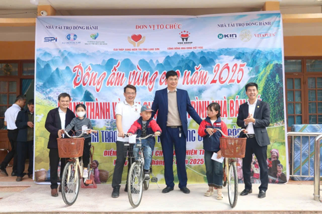 (Học sinh được nhận xe đạp của đoàn thiện nguyện).