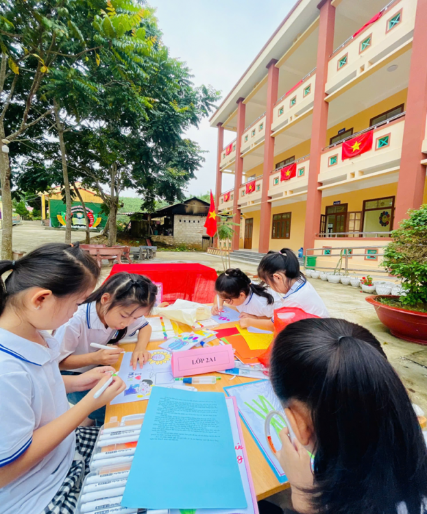 Từ những tờ giấy và hộp bút màu, dưới bàn tay khéo léo của các em học sinh đã thành những tấm thiếp xinh đẹp và chan chứa yêu thương. Mỗi tấm thiệp là một lời chúc mang tình cảm trong veo mà các em gửi đến bà, mẹ, cô giáo những người phụ nữ đã dạy bảo và che chở cho các em từng ngày.