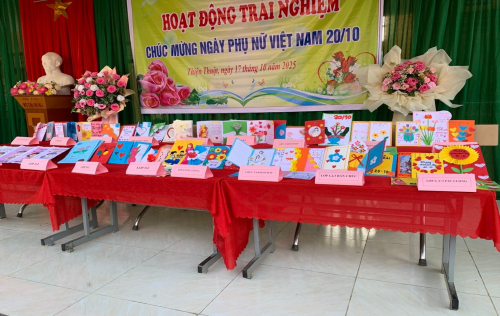 Hòa trong không khí hân hoan chào mừng 95 năm Ngày thành lập Hội Liên hiệp Phụ nữ Việt Nam (20/10/1930 – 20/10/2025), chiều ngày 17/10/2025 thầy và trò trường PTDTBT Tiểu học Thiện Thuật đã cùng nhau tổ chức hoạt động trải nghiệm đầy ý nghĩa – "Làm thiệp chúc mừng 20/10".